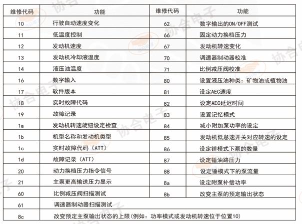 (2)显示机器状况(如:发动机转速、液压油温度、动力换档压力等)。维修编码:10到21